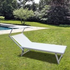 Bain De Soleil En Aluminium Blanc Et Toile Plastifiée Gris Clair