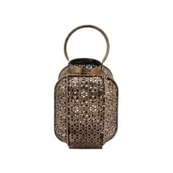 Lanterne Ethnique 16x14x32 Cm En Métal Et Verre Noir Et Vert
