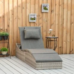 OUTSUNNY Bain De Soleil Design Contemporain Inclinable Alu Textilène Gris