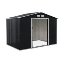 Cette maison de rangement est bien pensée. Elle est dotée d’une double porte coulissante pour ne pas perdre d’espace et faciliter le passage des outils. Les poignées peuvent, d’ailleurs, être liées par un cadenas (non fourni) pour sécuriser. Des grilles d’aération à l’avant et à l’arrière offrent une bonne ventilation et un peu de lumière dans l’abri. Le toit en pente, quant à lui, évite l’accumulation d’eau et de feuilles.