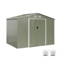 L’abri de jardin Ferrain est robuste. Ses panneaux laqués en acier galvanisé à chaud sont résistants à l’usure et au mauvais temps. La structure de toit épaisse assure une bonne longévité et le cadre en métal stabilise le tout. Un kit de fixation (cornières métal et chevilles béton)est fourni pour visser l’abri au sol.