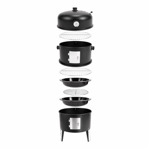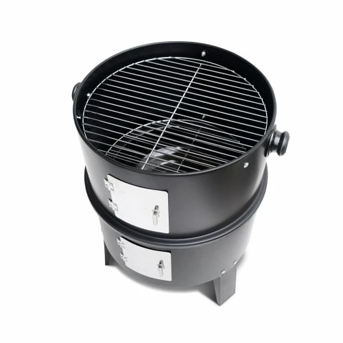 Les + produitsDouble fonction : fumoir et grill2 grilles de cuissonThermomètre et aérateur pour une bonne maîtrise de la températureBoite de fumage fournie avec copeaux de bois