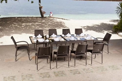 Table De Jardin Extensible En Aluminium Coloris Imitation Teck Et Gris Anthracite 8/12 Personnes