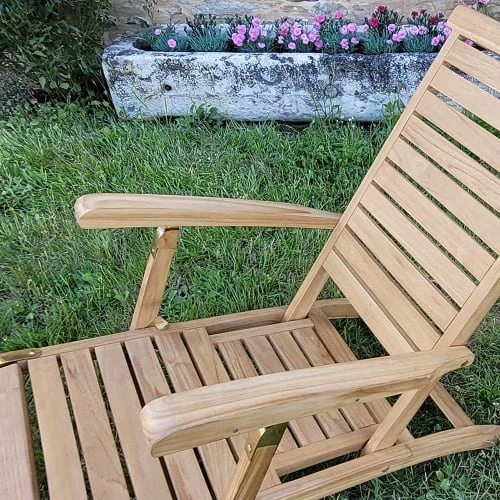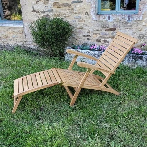 La chaise longue New Orleans reprend les codes de ce transat, diminutif de transatlantique. Elle est réalisée dans un beau teck massif de qualité dans un style plus épuré mais tout aussi confortable.