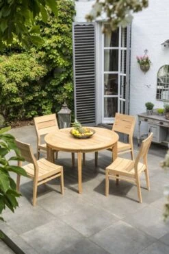 Table De Jardin Ronde En Bois De Teck Et Résine Tressée Multicolore 8 Personnes D140