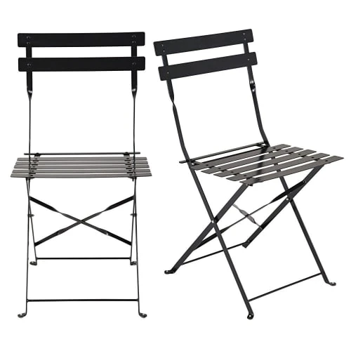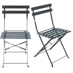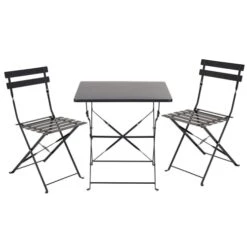 Tables 4 Personnes (x2) En Composite Imitation Teck Et Bancs (x4) En Résine Noire