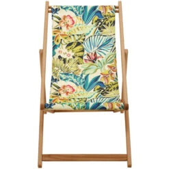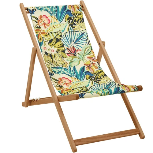 matière : Monture en bois d’acacia. Teinte Teck. Charge max. 100 kg. Fibre 100% polyester imprimĂ©e recto & verso. DĂ©perlant, anti-UV, rĂ©sistance aux taches et Ă la moisissure. Toile amovible, lavable en machine Ă 30 C.