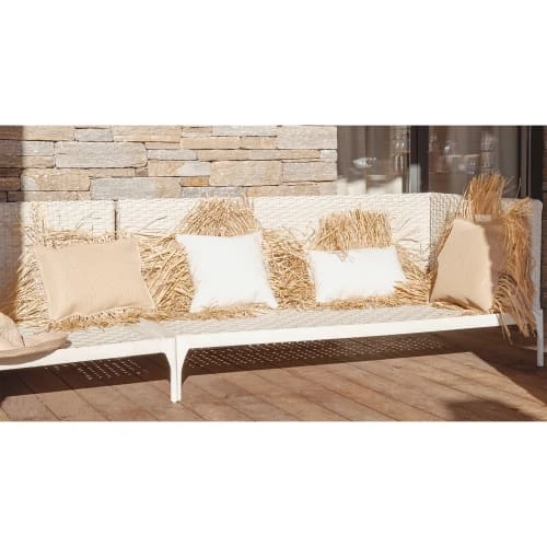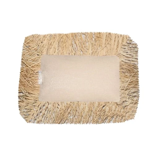 Ce pouf ne va pas dans l’eau à cause de ses franges en raphia naturel. Les franges nécessitent donc un entretien en les protégeant de la pluie et de l’humidité. En hiver, il est recommandé de les stocker dans un endroit sec.