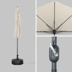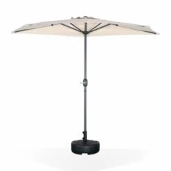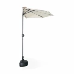 Profitez de votre balcon ou de votre terrasse tout en Ă©tant protĂ©gĂ© du soleil grâce Ă ce demi-parasol. Conçu pour les petits espaces extĂ©rieurs, il prend très peu de place.Sa toile en polyester d’une densitĂ© de 180g/m² offre un ombrage de qualitĂ© et une protection aux UV (50+). Ce parasol s’adosse au mur et se fixe sur sa demi base (PUHALF180BASE : non fournie). Son mât en aluminium est robuste et ses baleines sont en acier. La manivelle anti-retour permet une ouverture facile et sĂ©curisĂ©e.