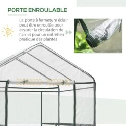 – MatĂ©riaux principaux : acier thermo-laquĂ© et bâche transparente en PVC