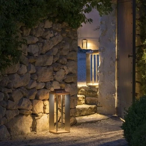 La collection outdoor Tecka Tinka se dĂ©cline en un large choix de modules complĂ©mentaires (lanternes, lampadaires, torches) et bĂ©nĂ©ficie d’un indice de protection Ă©levĂ© (IP55) qui la garantit contre les poussie?res et les projections d’eau.