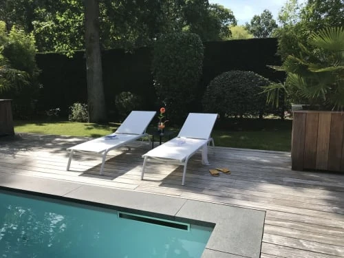 Tables 4 Personnes (x2) En Composite Imitation Teck Et Bancs (x4) En Résine Noire