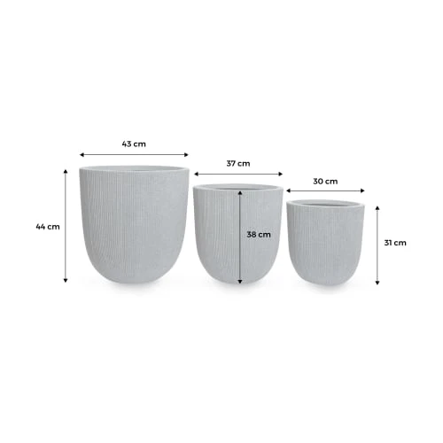 À la fois pratique et esthétique, ces cache-pots embelliront vos plus belles plantes. On aime leur design imitation béton avec un léger relief qui leur donne une allure moderne. Ce lot comprend 3 vases de tailles différentes, vous pouvez les disposer l’un à côté de l’autre pour jouer avec les tailles, ou séparément. Ces vases peuvent être utilisés comme cache-pots ou bacs à fleurs. Ils sont dotés d’un trou de drainage pour l’irrigation (l’orifice peut être laissé ouvert ou fermé selon les besoins de la plante).