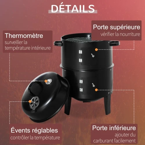 – Barbecue fumoir grill braséro 3 en 1 polyvalent et incontournable pour tous les adeptes de viande ou poisson grillé, mitonné ou fumé