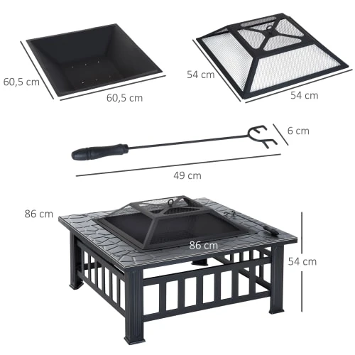 – Dim. brasero : 60,5L x 60,5l x 11,5H cm