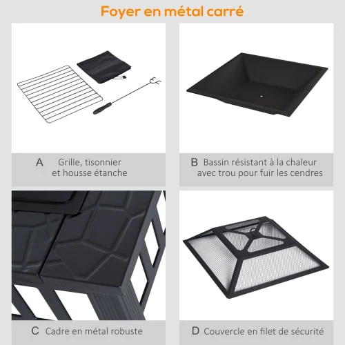 – Grand foyer carré de 57 cm de longueur afin de diffuser une chaleur appréciable pour vous et vos convives