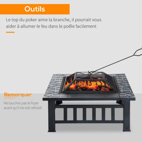 – Sécurité optimale d’utilisation grâce au tisonnier et au couvercle pare-étincelles