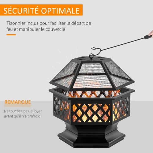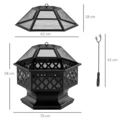 – Brasero de forme hexagonale en mĂ©tal coloris noir est idĂ©al pour sublimer votre extĂ©rieur