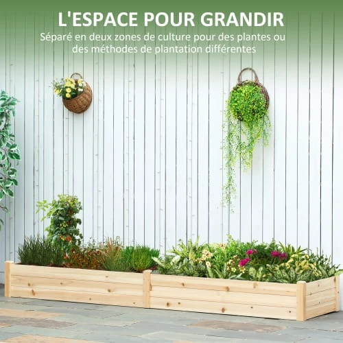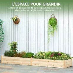 – Carré potager rectangulaire avec panneaux en bois naturel de sapin idéal pour ajouter une touche d’élégance à votre jardin ou plantation