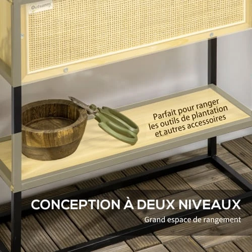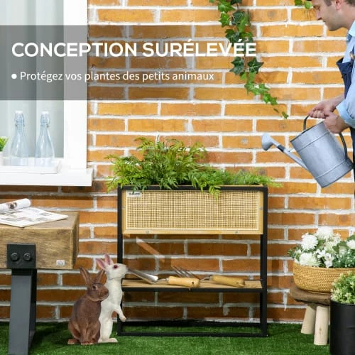 – Jardinière avec étagère très pratique pour y déposer des outils ou placer quelques pots de fleurs, décorations