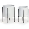 – Jardinière style naturel en métal noir, bois de sapin verni et bambou tressé parfaite pour ajouter une touche d’originalité et d’élégance à votre extérieur