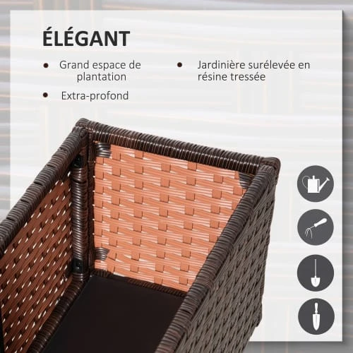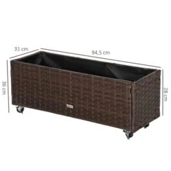 – Jolie jardinière rectangulaire en résine tressée aspect rotin chocolat