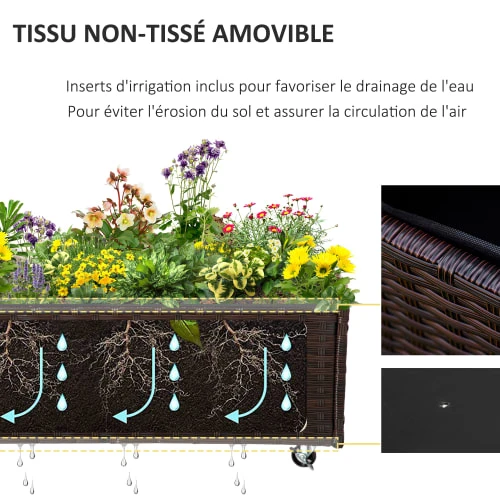 – Jardinière sur roulettes équipées de frein : déplacement facile, stabilité optimale à l’arrêt