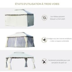 – Double toit pour une ventilation optimale mĂŞme si moustiquaires et rideaux fermĂ©s