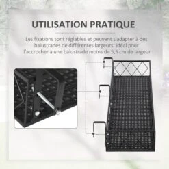 – Les fixations sont réglables, vous pouvez l’accrocher à une balustrade moins de 5,5 cm de largeur