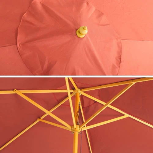 La structure du parasol Cabourg est en bois. La toile est en polyester enduit d’un produit hydrofuge. Cela la rend déperlante. Le mât s’insère dans n’importe quel pied de parasol compatible avec les mâts de 38mm de diamètre.