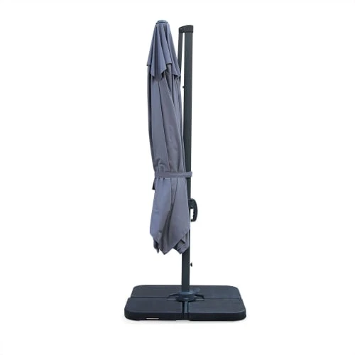 Attention, les dalles nécessaires pour lester le parasol ne sont pas fournies, vous retrouverez une sélection de dalles dans notre boutique (remplissable ou en résine).