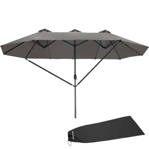 OUTSUNNY Parasol Déporté LED Carré Inclinable Pivotant 360° Gris
