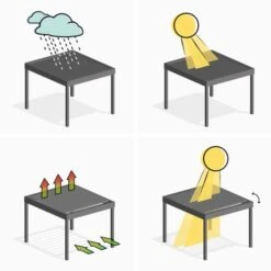 Avec son design léger et élégant, elle apporte une touche contemporaine dans votre jardin. Ses dimensions vous permettent de l’installer facilement sur votre terrasse au-dessus d’une table de jardin ou au bord d’une piscine. Elle peut aussi être utilisée pour abriter votre spa. Conçue avec une structure en aluminium de qualité et des lames en acier galvanisé, cette pergola est un investissement sur le long terme. Elle est robuste, anti UV et demande très peu d’entretien.