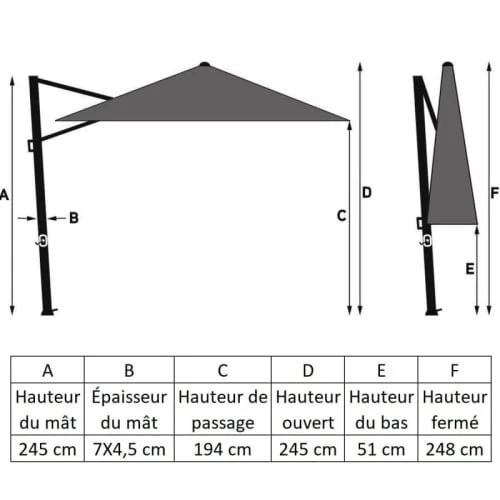 OUTSUNNY Parasol Déporté LED Carré Inclinable Pivotant 360° Gris