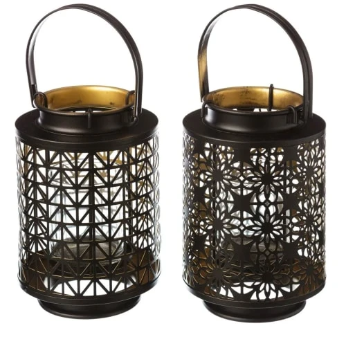 Set de 2 lanternes en métal noir et doré.Dimensions: 12x12x18cmCouleur: Noir et doréMatière: Métal
