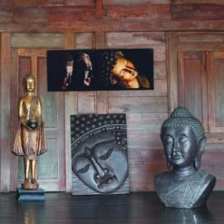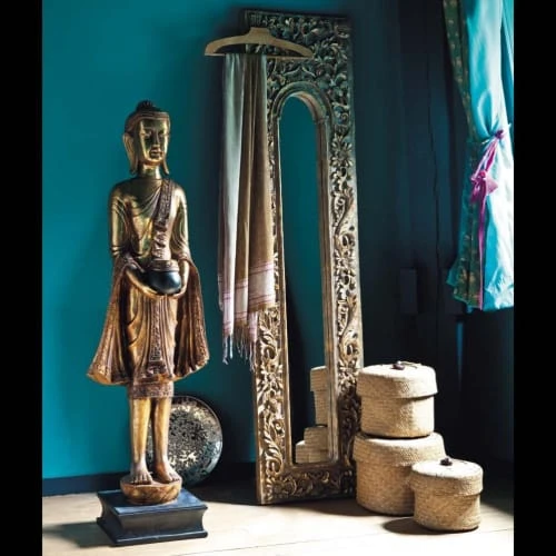 Impressionnante par sa taille, la statue Bouddha debout de 140 cm de haut est l’objet déco qui ouvrira votre salon à un autre monde. Cette sculpture bouddha sonne comme une invitation à la découverte des charmes de l’Asie.