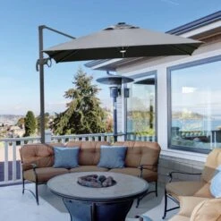 OUTSUNNY Parasol Déporté LED Carré Inclinable Pivotant 360° Gris
