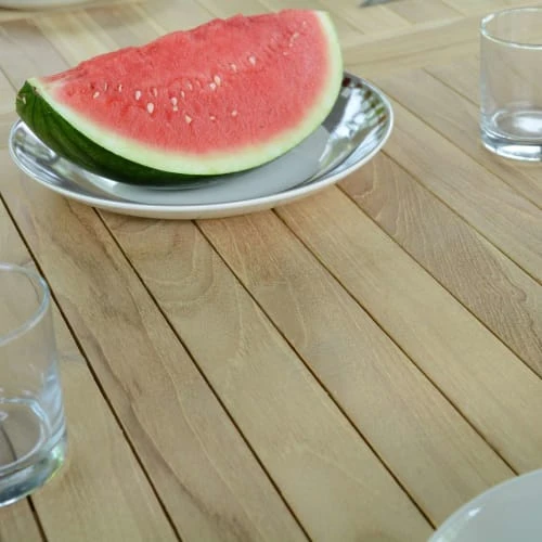 Le teck est un matĂ©riau noble, particulièrement intĂ©ressant pour la fabrication du mobilier de jardin en raison de ses propriĂ©tĂ©s exceptionnelles. Il rĂ©siste aux agressions climatiques (pluie, soleil, air marin…) et il est imputrescible. Il prend au fil des saisons une jolie patine qui lui donne tout son charme.