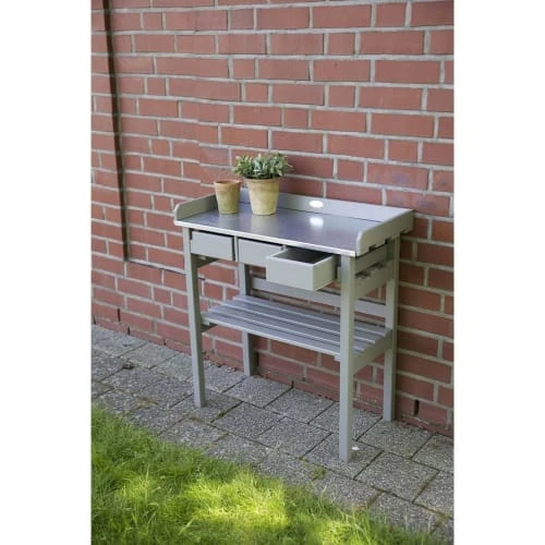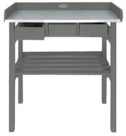 Aspect : Certification (bois) : FSC 100%Coloris : gris MatĂ©riau principal : PinMatĂ©riaux secondaires : Zinc (plateau)Dimensions : Hauteur (en cm) : 82,50Longueur (en cm) : 78,00Profondeur (en cm) : 35,00Autres caractĂ©ristiques : Collection : Farm FolkloreInformation complĂ©mantaire : LivrĂ©e sans accessoires (pots, outils…)LivrĂ© en kit : OuiNombre d’Ă©tagère : 1Nombre de tiroir : 3Poids (en kg) : 12,20 Table de jardinage en pin et zinc