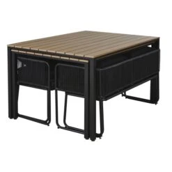 Revêtement des coussins : tissu 100% polyester 260 g / m2, coloris noir, déhoussables et résistants aux UV